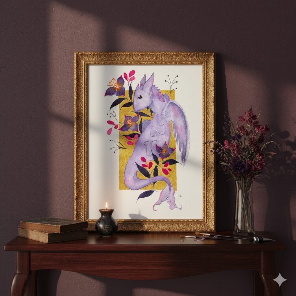 On raconte que ce dragon a la capacité d’écouter les pensées errantes, apportant calme et méditation à ceux qui en ont besoin, les berçant d’un voile apaisant sous son regard bienveillant. Sa posture, bien que paisible, révèle un monde intense et mystérieux, vibrant d’énergie et de secrets murmurés, cachés dans l’ombre du crépuscule. 🌌🌺